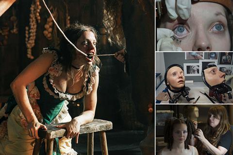 “I had a lot of days where I felt like Fawlty Towers, running from set to the make-up trailer,” says Foldberg, who had just one assistant on set and sometimes worked alone. While he was concentrating on the horror elements, Sauerberg turned to the period look and the fairy-tale elements. “It was me doing curls and wigs, and Thomas in another trailer,” she recalls. “We met sometimes. ‘Thomas, did you have anything to eat?’ ‘No.’ ‘Here, have a biscuit!’”